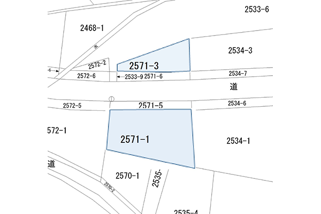 県道を挟んで南側土地2571-1と北側土地2571-3の両方一緒の売買を希望